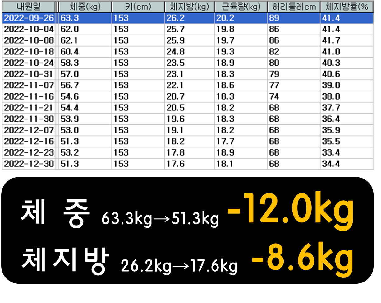 특이사항: 4년전 출산 후에 49kg 까지 회복했지만 육퇴 후 폭식이 최고체중을 불렀어요