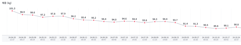 기간이 길어져서 시리얼 인바디를 두장씩 싣게 되네요. 이 분은 처음엔 아내분이랑 같이 오신 기업 임원 분이십니다. 이처럼 남편분 혹은 아들의 건강을 걱정해서 가족 통해서 오시는 경우도 꽤 됩니다. 삭센다도 사용하다가 위고비로 건너가고 현재는 위고비를 중단하고 먹는약을 사용중인데 이렇게 비만치료는 한가지 옵션만 있는게 아니라 돌아가면서 여러가지를 시도해볼 수 있고 가장 중요한 건 자주 내원하여 측정하고 전략을 상의하는 것입니다.