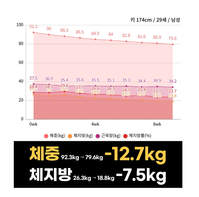 배달음식을 대체할수있는 간단하지만 든든한 식사를 목표로 한 영양상담이 진행되었습니다. FM 대사 수액 치료와 더불어 삭센다를 저용량으로 시작하여 증량없이도 92kg 부터 2달여간 12.7kg 를 감량하셨고 최종 목표를 향해 달려가고 계십니다.